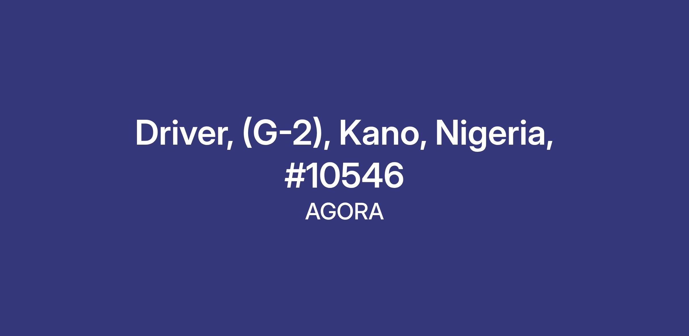 If you would like to know more about this position, please review the complete Job Description here: Driver, G-2 - Kano.doc