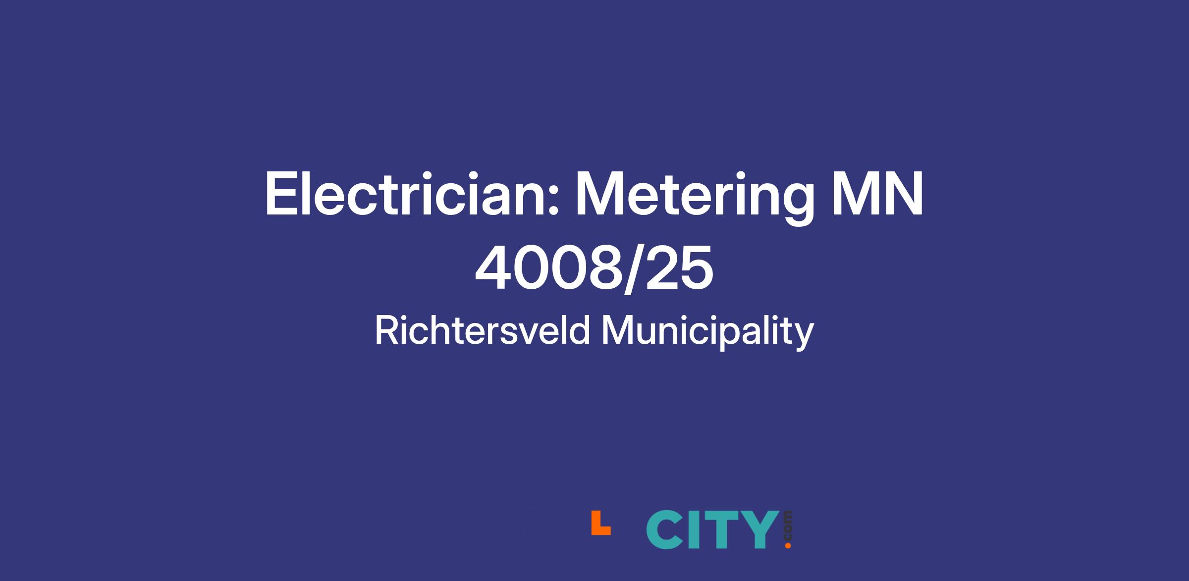 -Grade 12 (Matric) / N3. - National Diploma in electrical or Qualified electrician (red seal.) - Wireman’s licence will be an added advantage. - Valid Driver’s License CI (PDP will be an added advantage). - Experience in Electricity Metering (Prepaid and conventional). - Knowledge of programmable meters will be an added advantage. - Must be willing to perform standby overtime duties. - Three (03) years’ relevant electrical experience preferably within a local government environment.